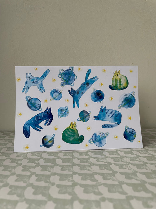 Cats in a Fall Garden at Sunset Unframed Art Print