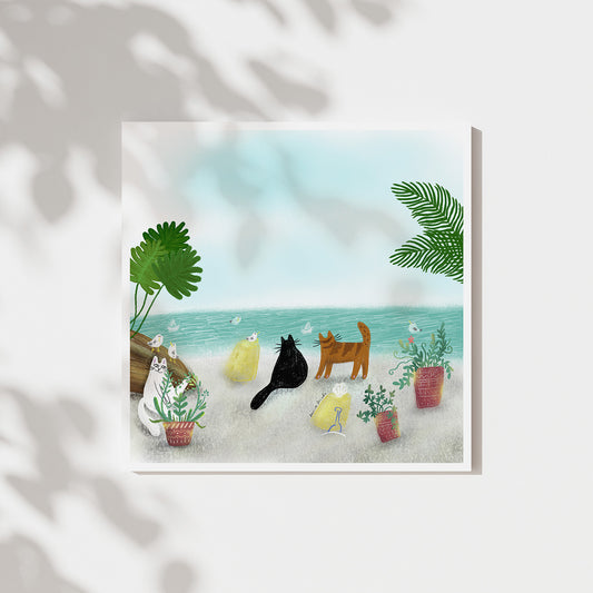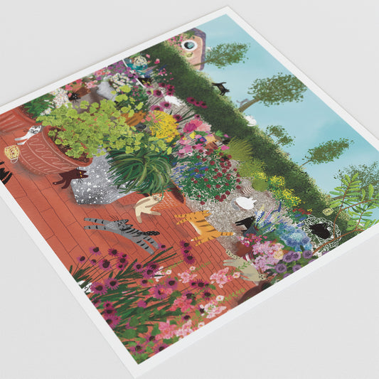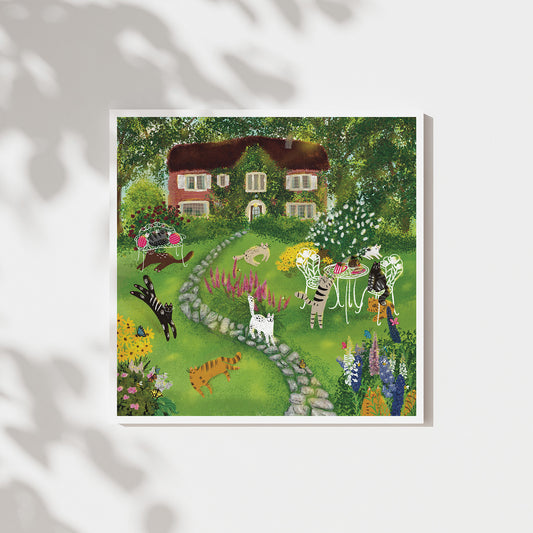 Unframed art print: Cats Celebrating Summer At the Front Yard