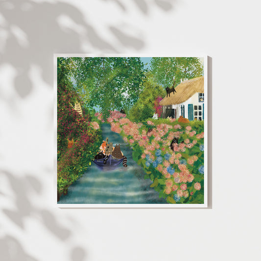 Cats on a Canal in a Cozy Village Unframed Art Print