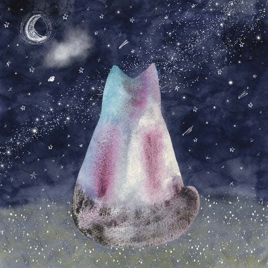 Unframed art print: Cat watching Milky Way and Galaxies and shooting stars