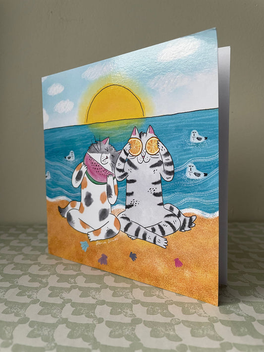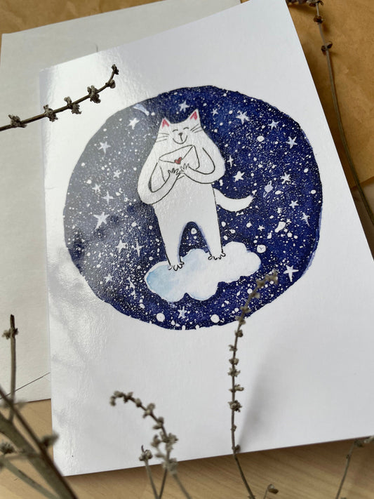 Vertical Greeting card: Cozy Cat with Hot Cocoa