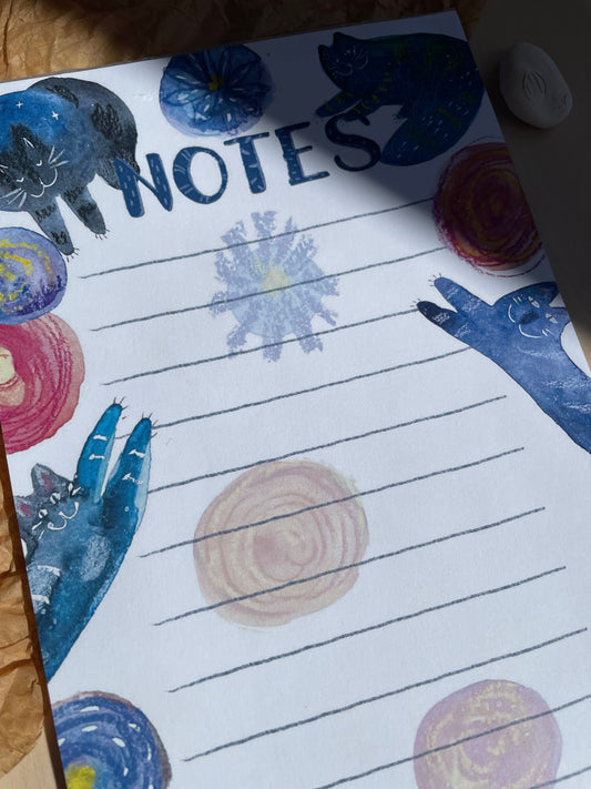 Take your notes on these handpainted notepads scattered with whimsical cats. These cats may not help you cross out every item on your to-do list but they'll make taking notes or making lists brighter and ore fun!