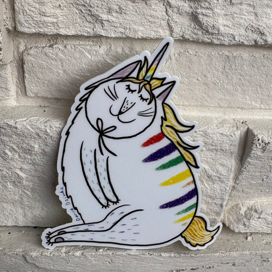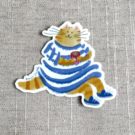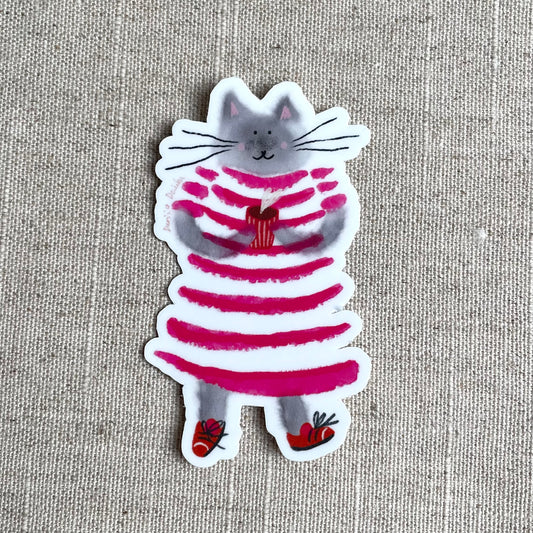 Cat in a Long-sleeved Dress and Coffee Sticker