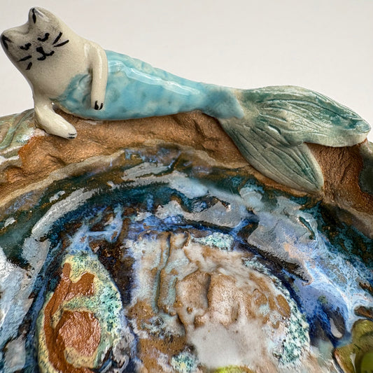Impression d’art chat : Oeuvre de chat bleu et pelote de laine