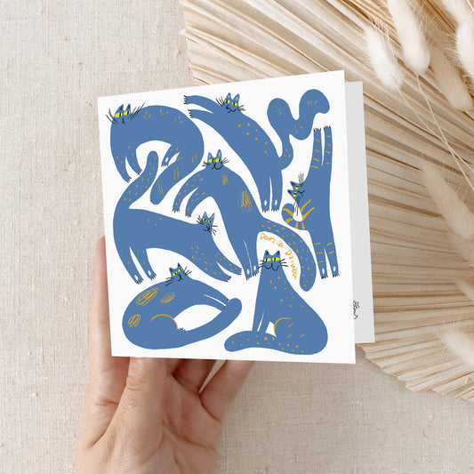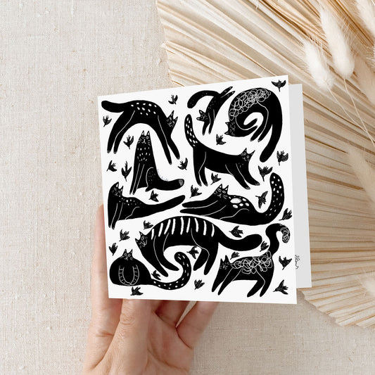 Carte de vœux carrée : élégantes silhouettes de chat à l'encre noire
