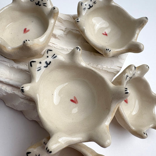 Petits chats en céramique sculptés à la main avec cœur – Modèles assortis