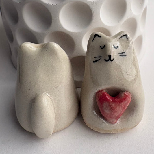 Carved Tiny Handmade Ceramic Cat Figurine