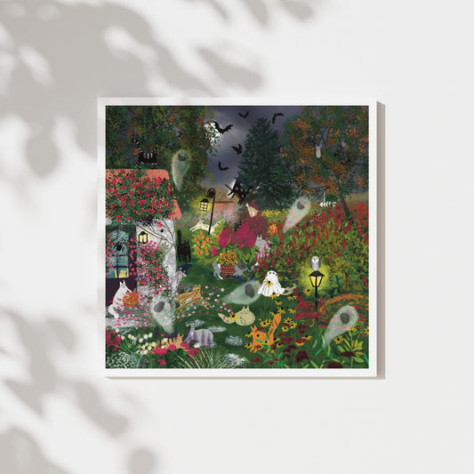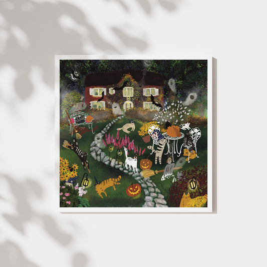 Impression d'art sans cadre : Chats dans le jardin d'Halloween