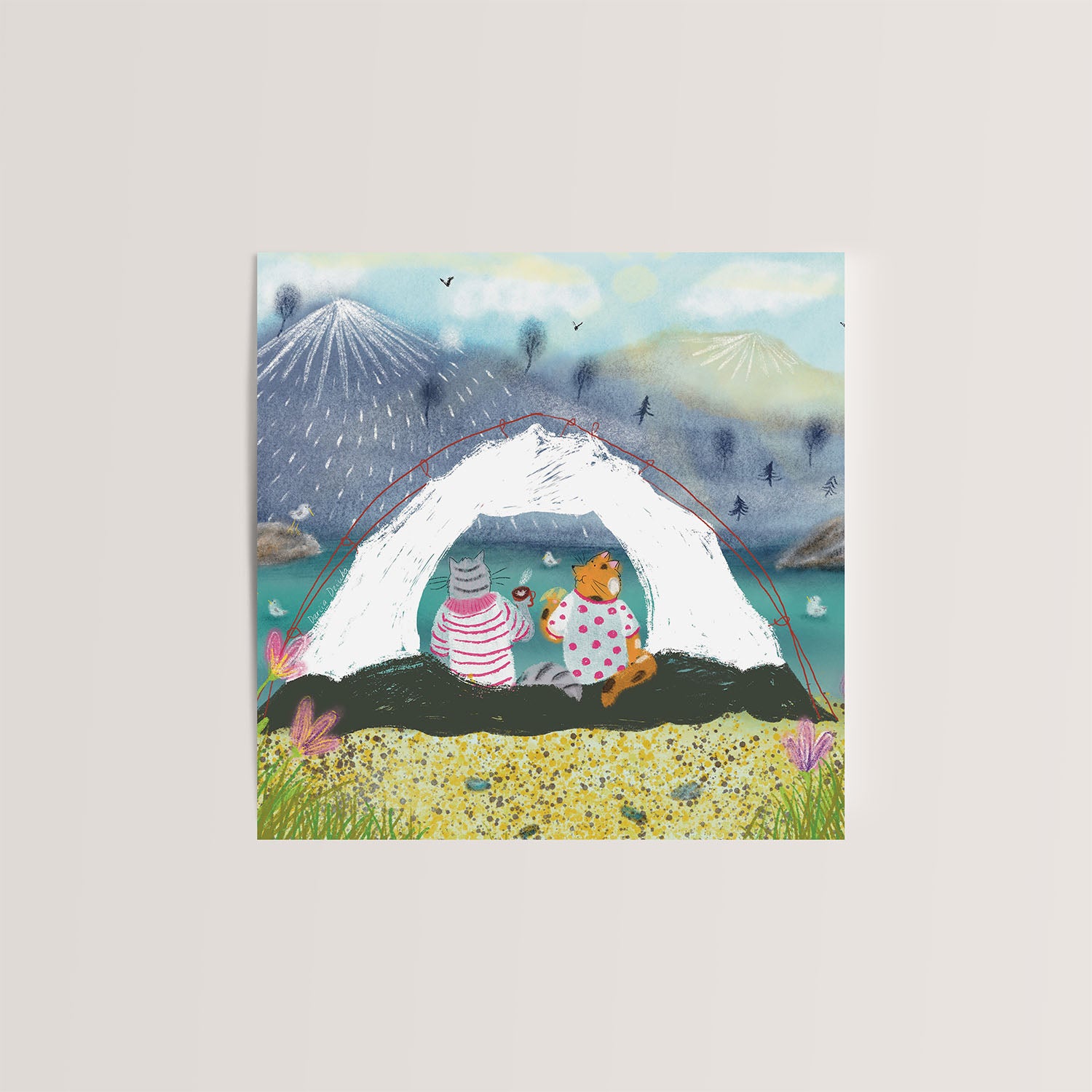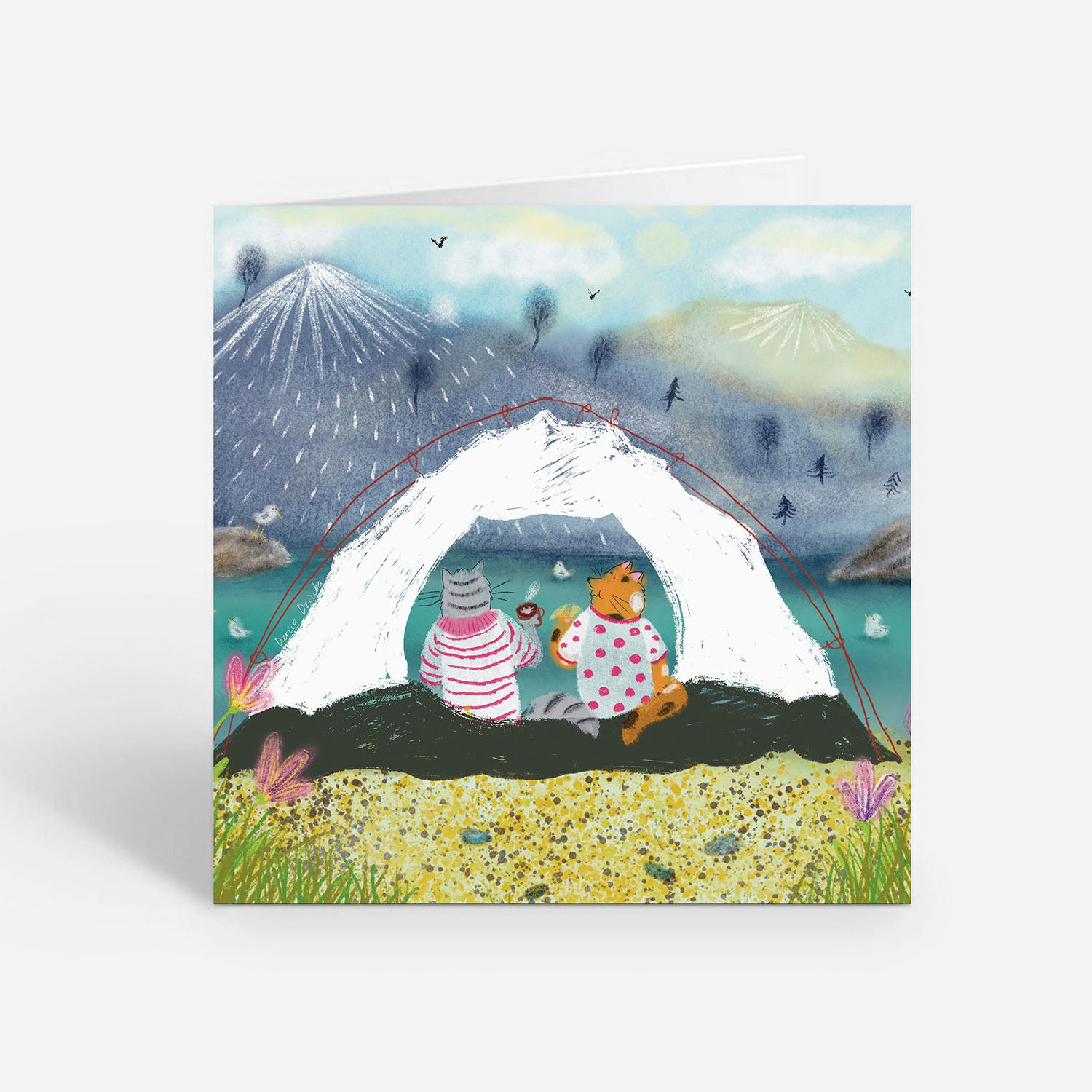 Célébrez l'amitié ou l'amour avec cette carte de vœux chaleureuse de 12,7 cm x 12,7 cm (5" x 5"), mettant en vedette deux chats douillets profitant d'un voyage de camping paisible sous les étoiles. Parfaite pour partager des moments chaleureux avec des amis ou des proches, cette carte est vierge à l'intérieur, ce qui vous donne l'espace pour ajouter votre propre message sincère. Que ce soit pour un ami, un partenaire ou simplement une personne spéciale, cette carte fantaisiste capture la magie des aventures partagées.