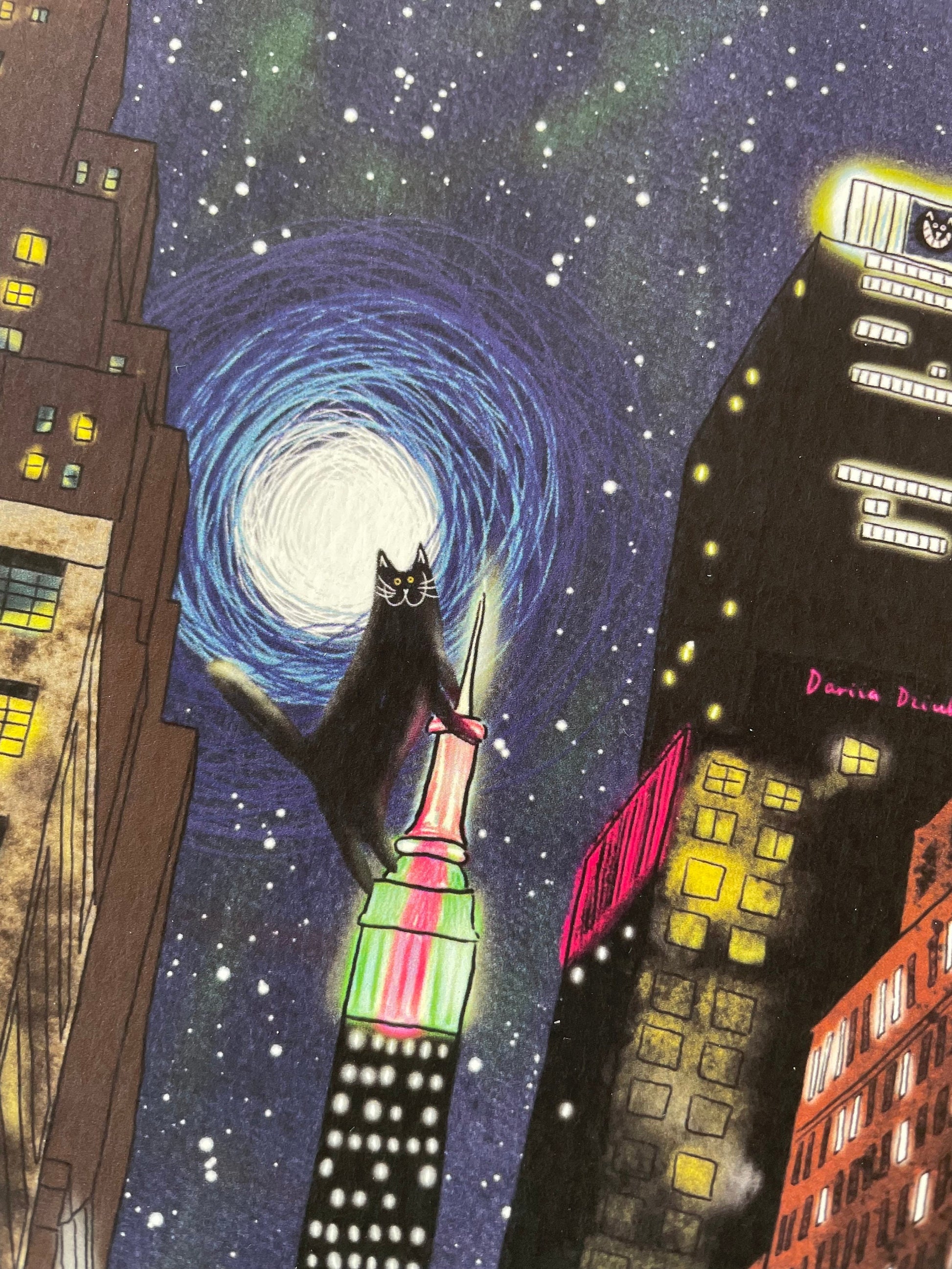 L'impression d'art d'un chat sur l'Empire State Building à New York est imprimée sur du papier fine art de haute qualité.