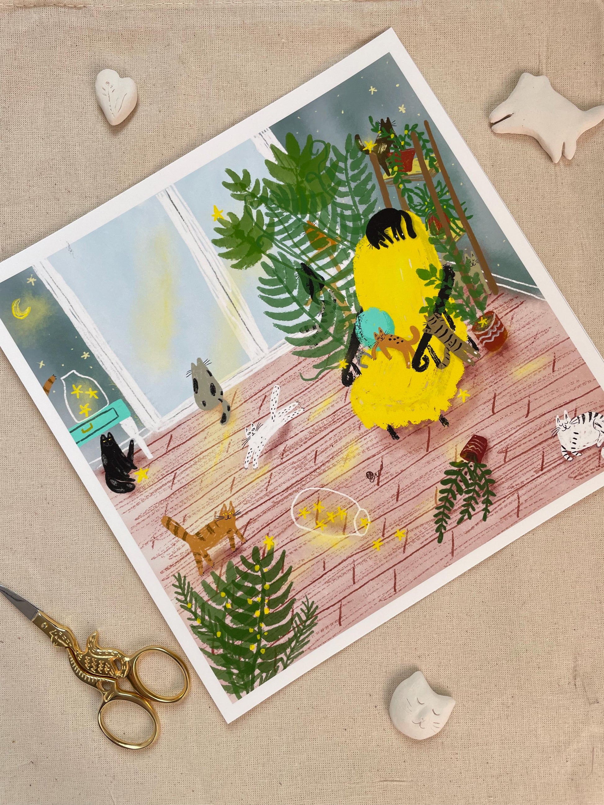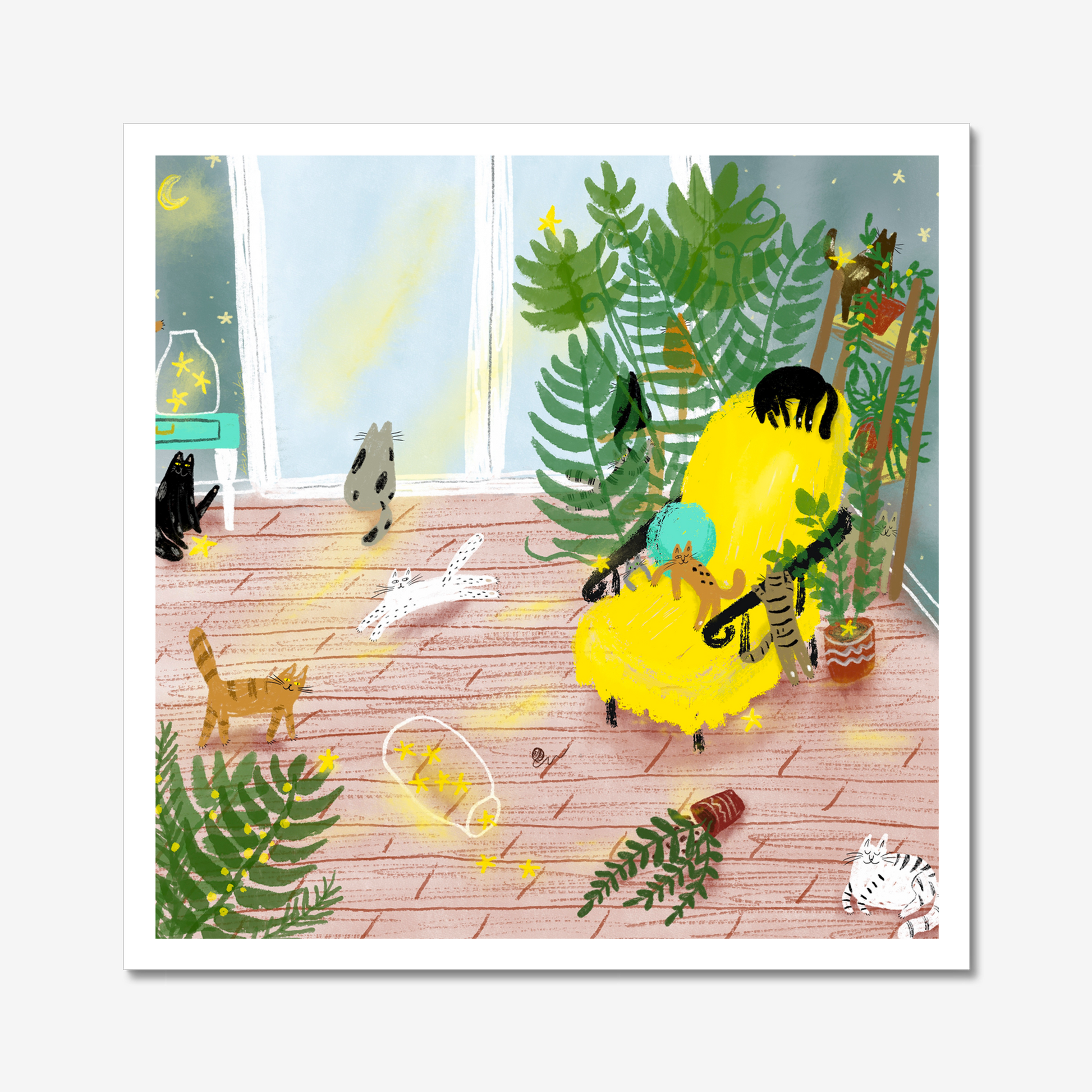 Impression d'art de chat : Chats dans une chambre étoilée