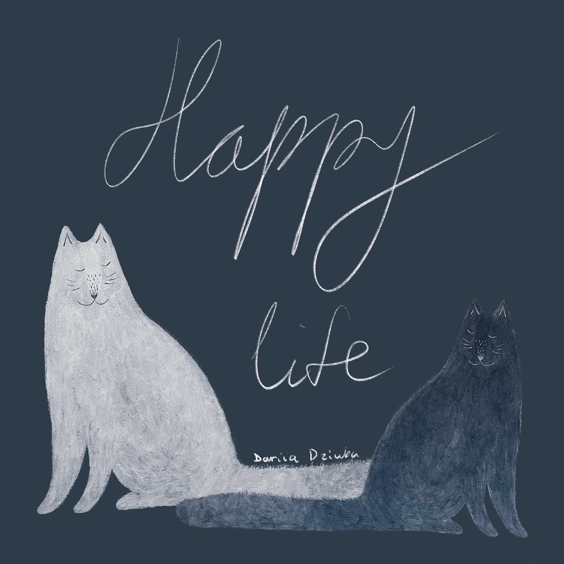 L'impression d'art de chats heureux de leur vie est imprimée sur du papier d'art de haute qualité.
