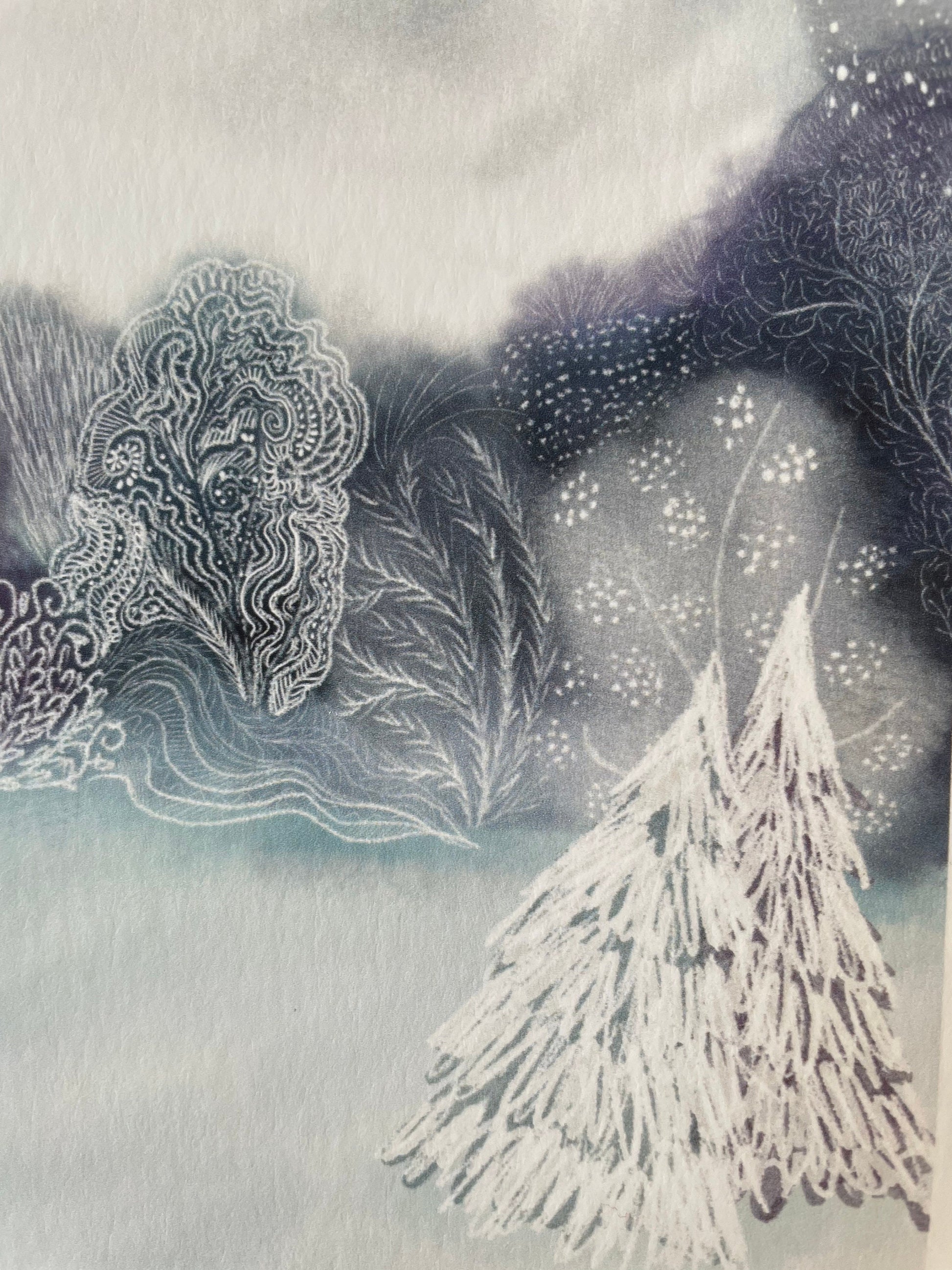 L’impression d’art d’un chat nuage blanc au pays des merveilles hivernales est imprimée sur du papier d’art de haute qualité.
