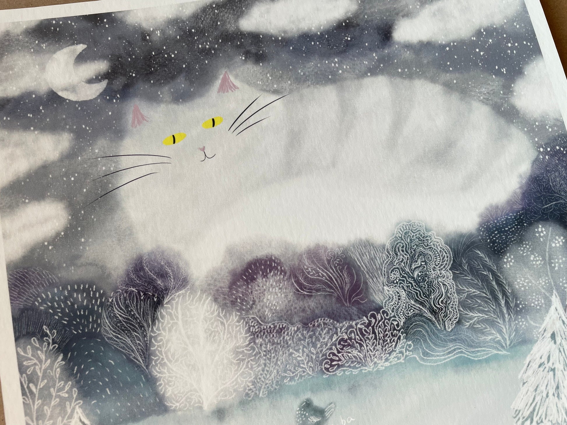 Impression d’art de chat : Illustration d’illustration de chat de nuage d’hiver