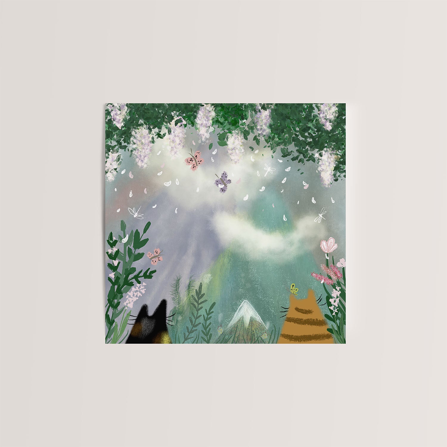 Faites un petit miaou à vos pattes et réfléchissez avec cette carte de vœux parfaite de 5"x5" (12,7 cm x 12,7 cm) ! Deux chatons curieux s'assoient et profitent de la vue griffue des montagnes, des papillons et des fleurs en fleurs. Que vous envoyiez un message d'anniversaire ronronné ou une note de patte, cette carte fera le bonheur de votre félin destinataire. L'intérieur vierge vous permet d'écrire votre propre message pour n'importe quelle occasion.