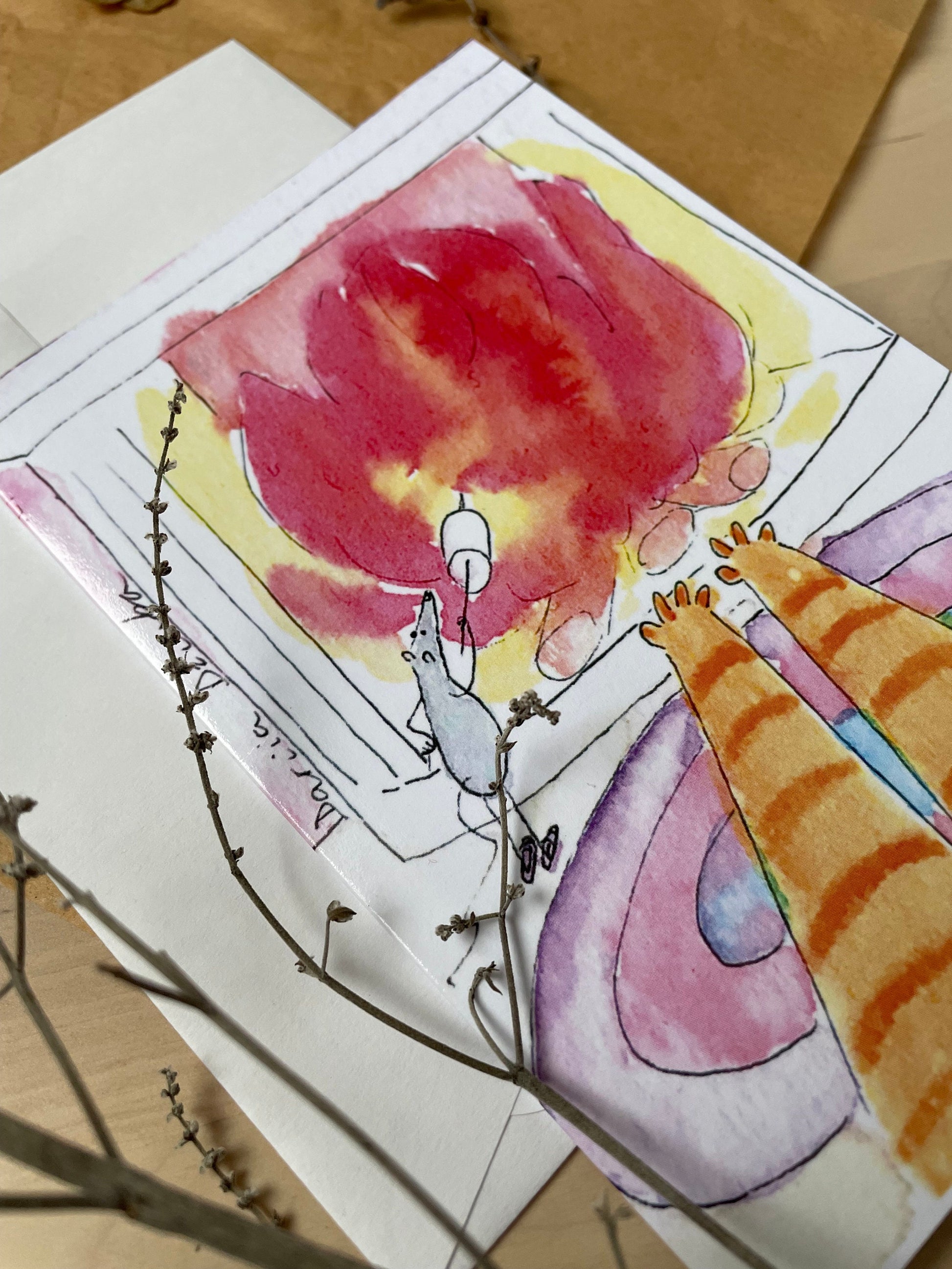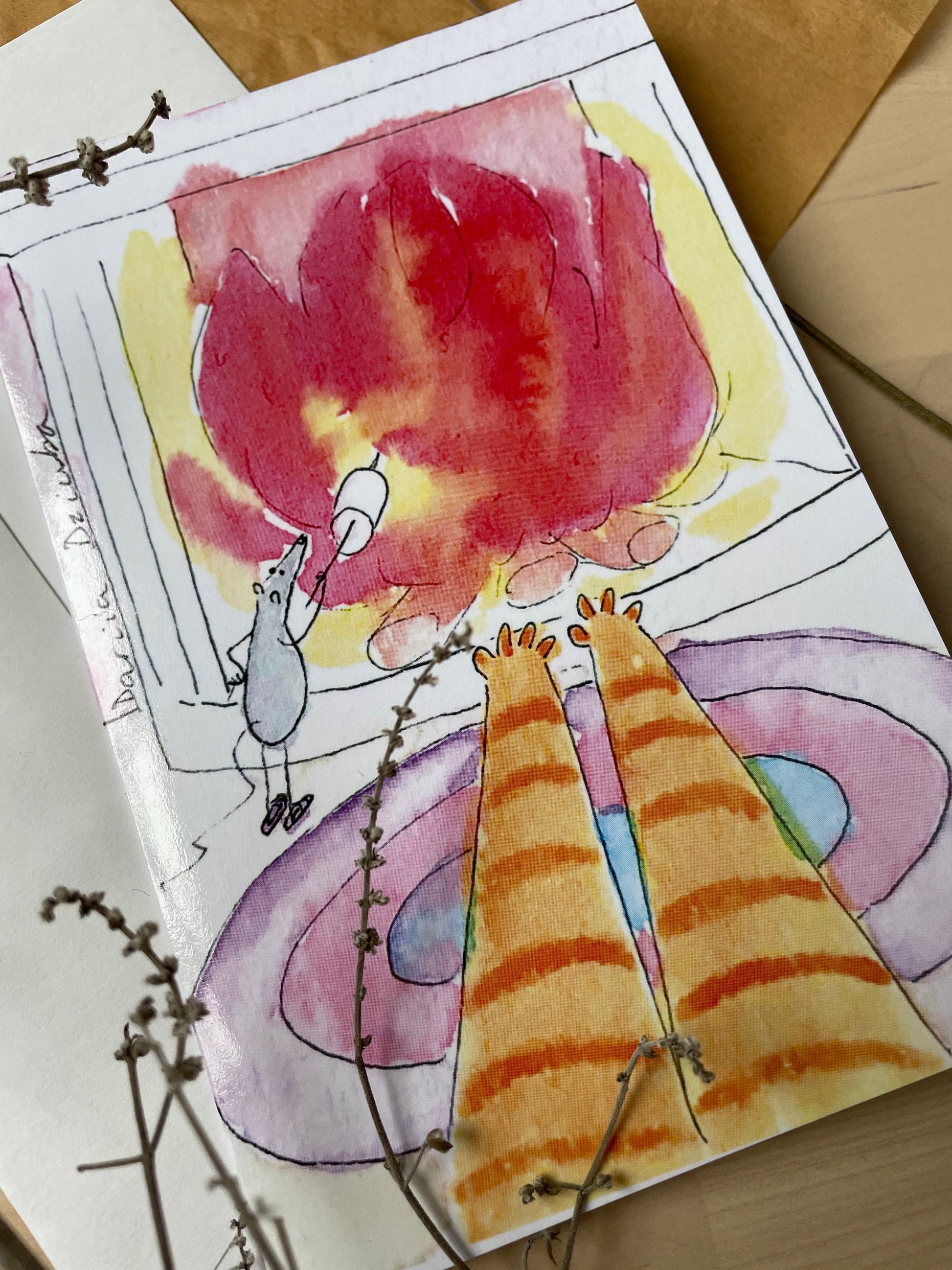 Que font les couples ? Ils font des choses ensemble : ils s'assoient devant un feu, sortent, boivent une bonne tasse de thé ou de café, discutent. Ces choses simples rendent les couples plus forts. La vie quotidienne simple est exactement ce que la carte célèbre et vous pouvez dire je t'aime avec ce joli message simple. À l’origine, une aquarelle est devenue une carte de vœux à offrir à cette personne importante dans votre vie.