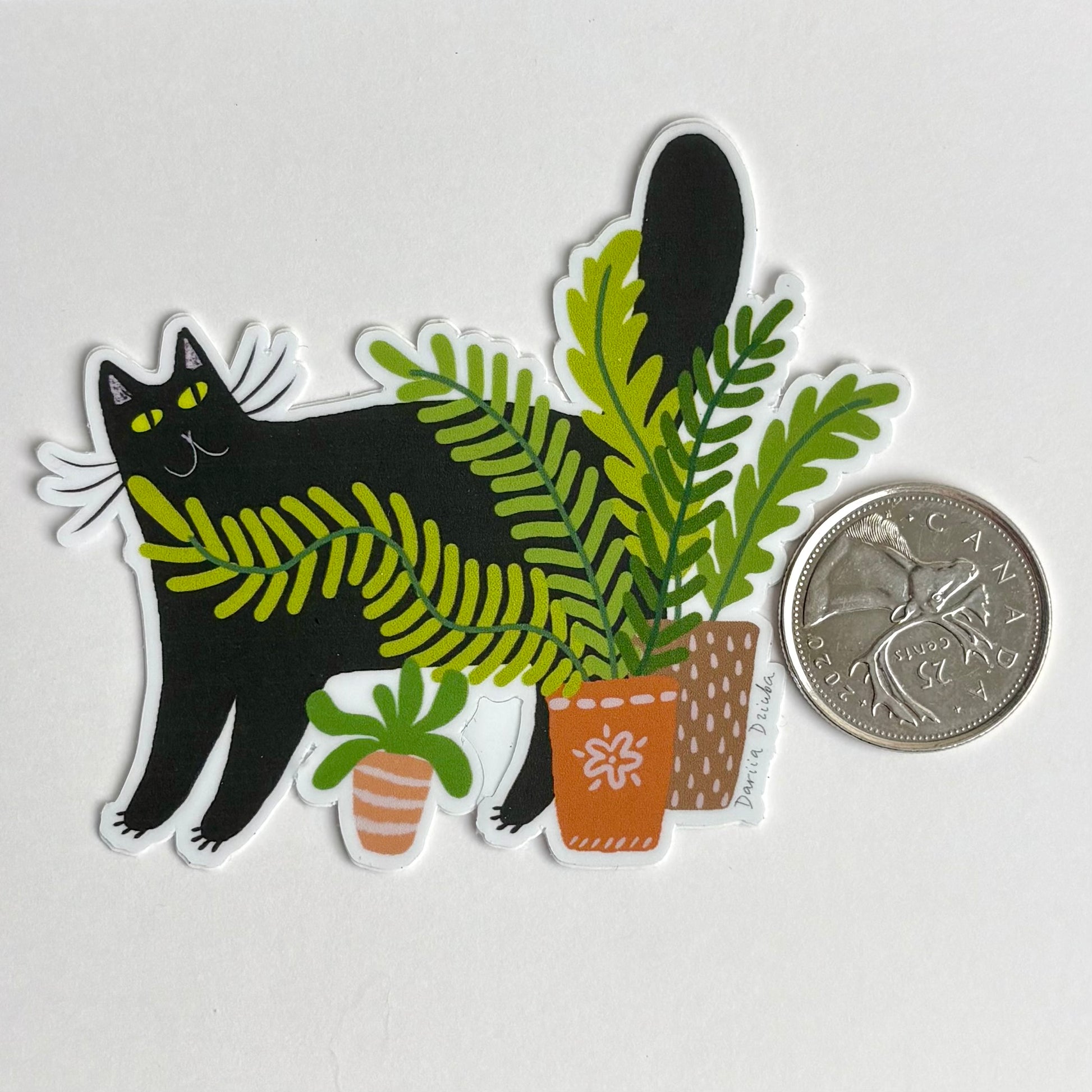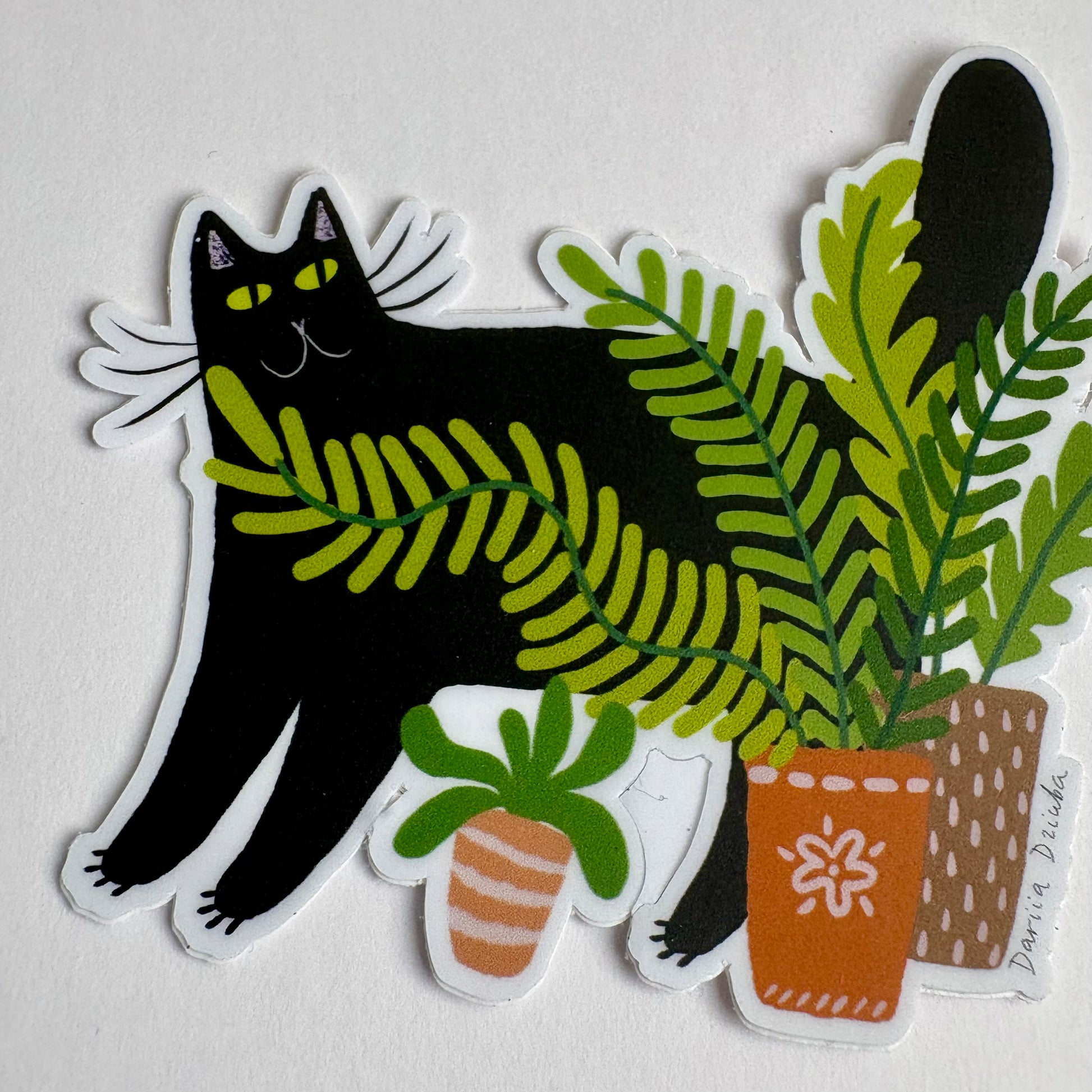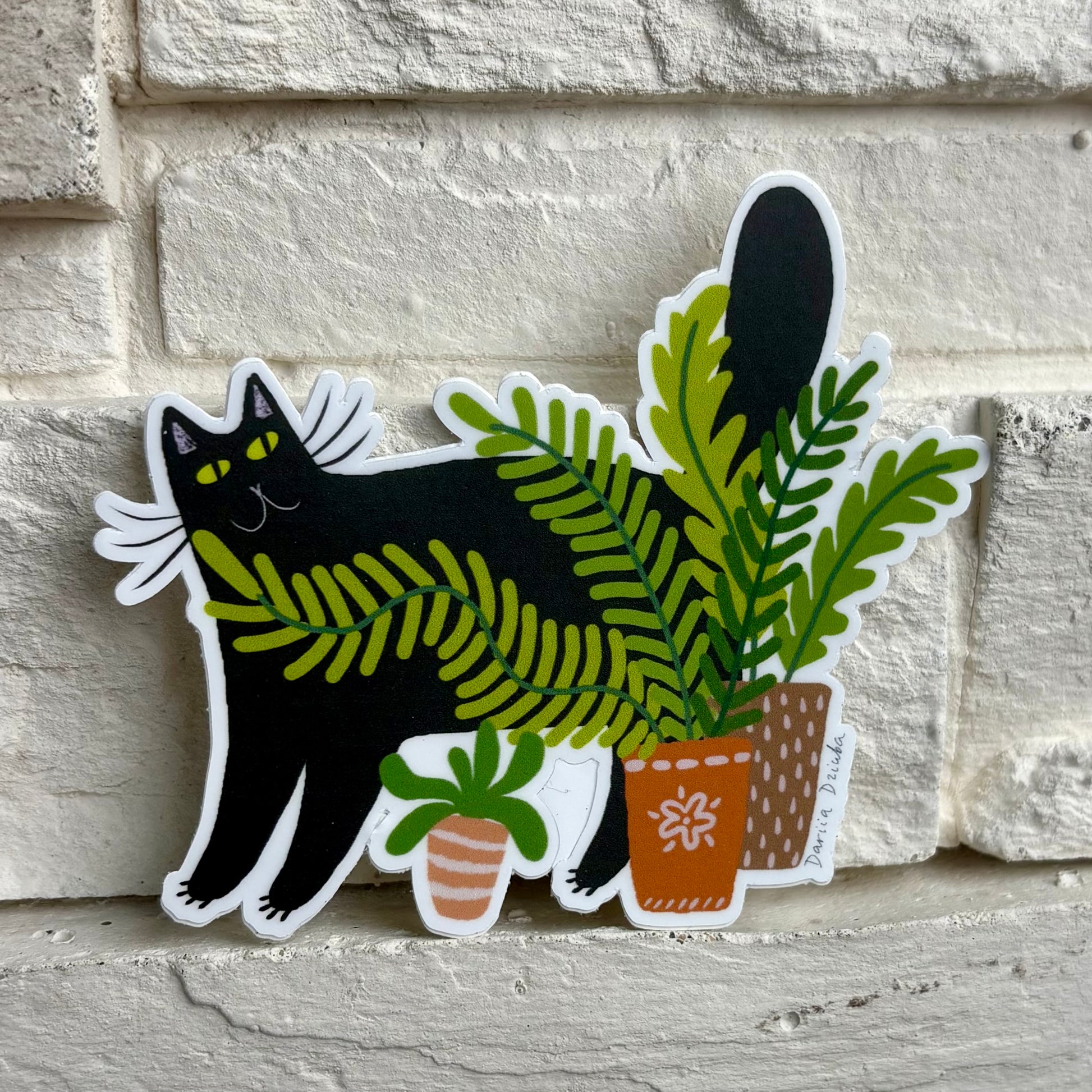 Autocollant : Chat noir et plante
