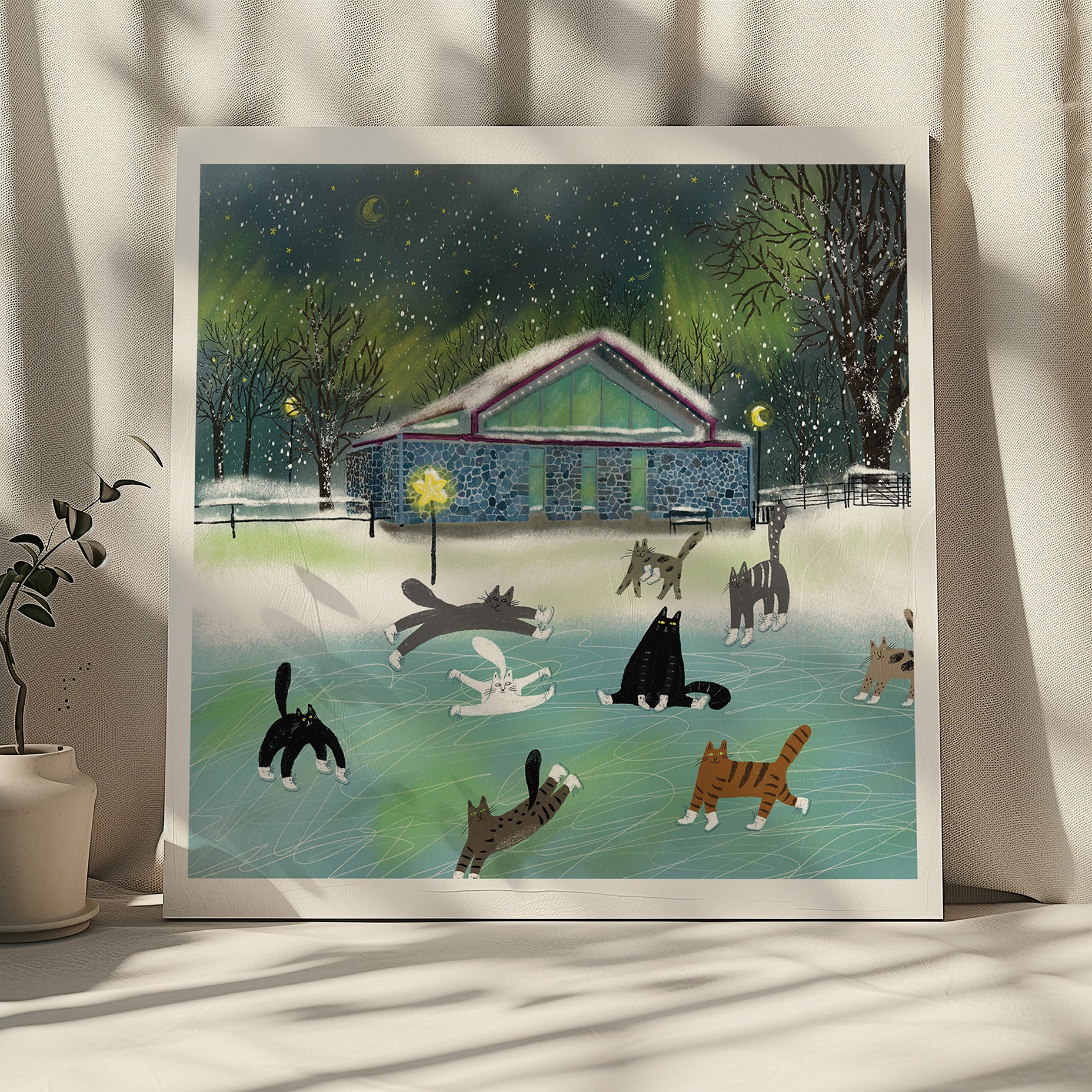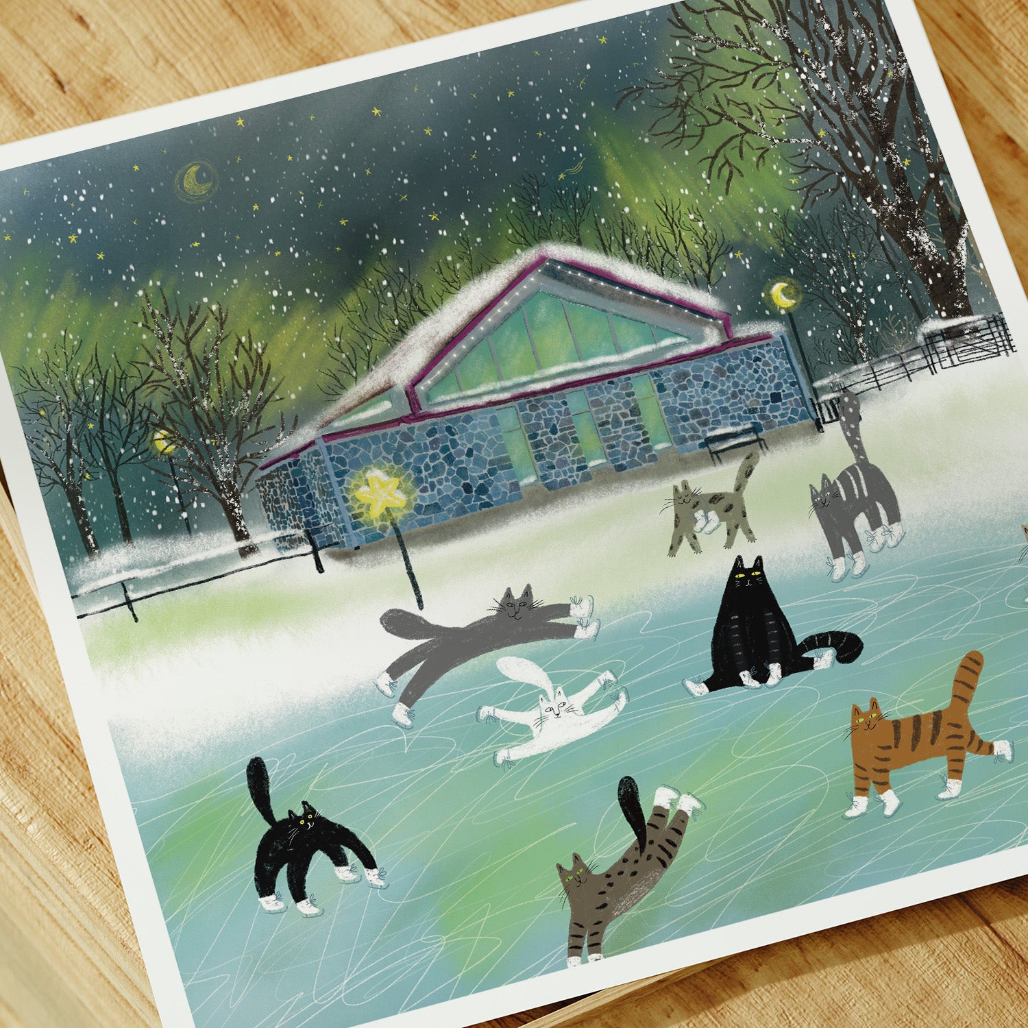 L'impression d'art de chats patinant sur glace est imprimée sur du papier d'art de haute qualité.