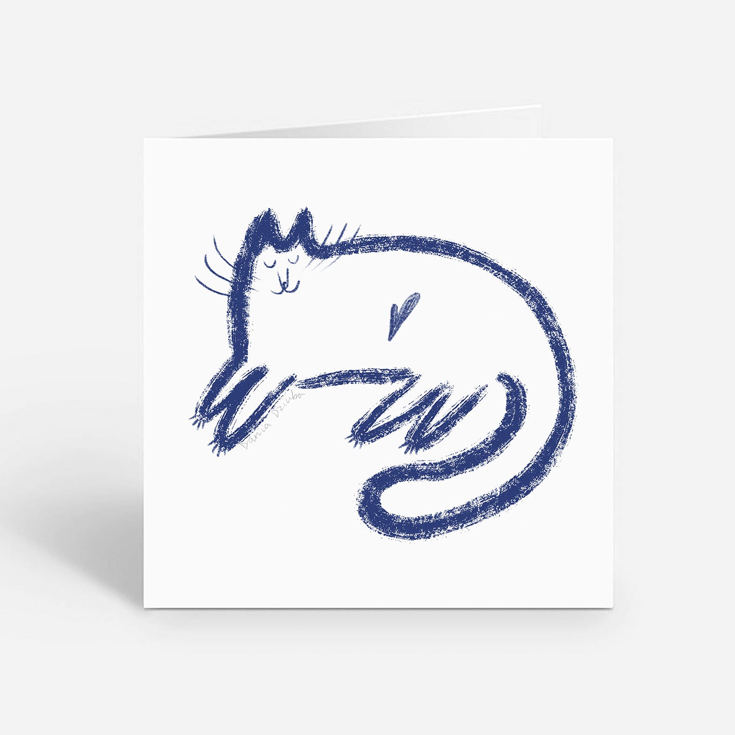 Send some purr-sonalized love with this sweet and simple 5"x5" (12.7 cm x 12.7 cm) greeting card! Featuring a cozy cat curled up with a heart on its side, this minimalistic yet charming design is purrfect for sending warm wishes on any occasion—whether it’s for a birthday, Valentine’s Day, or just to say hello. The blank interior gives you all the space you need to whisker up your own heartfelt message.