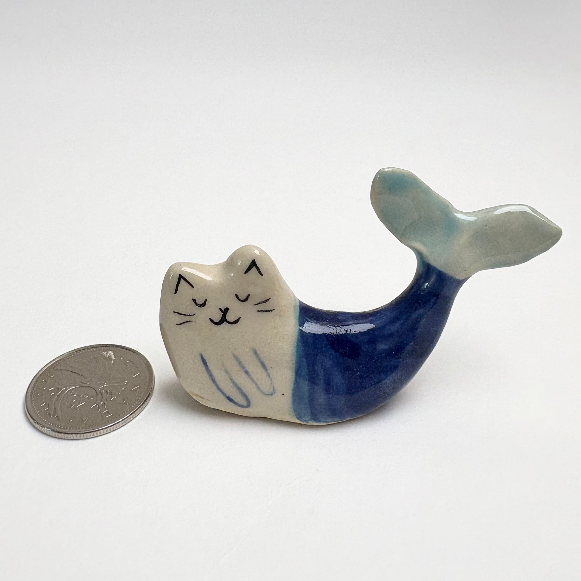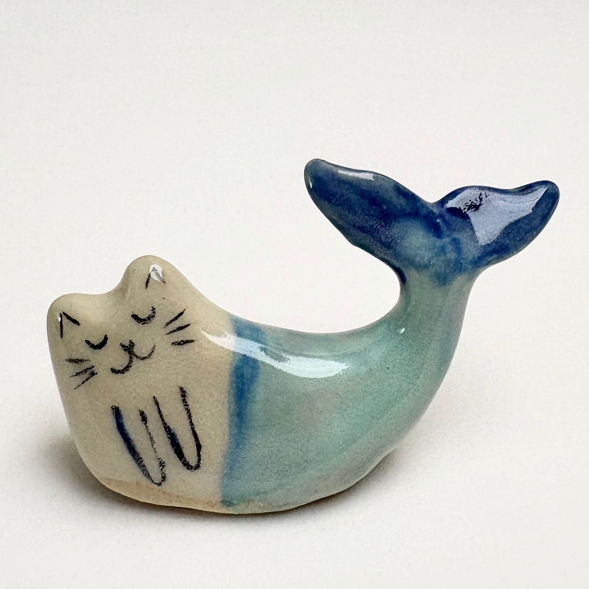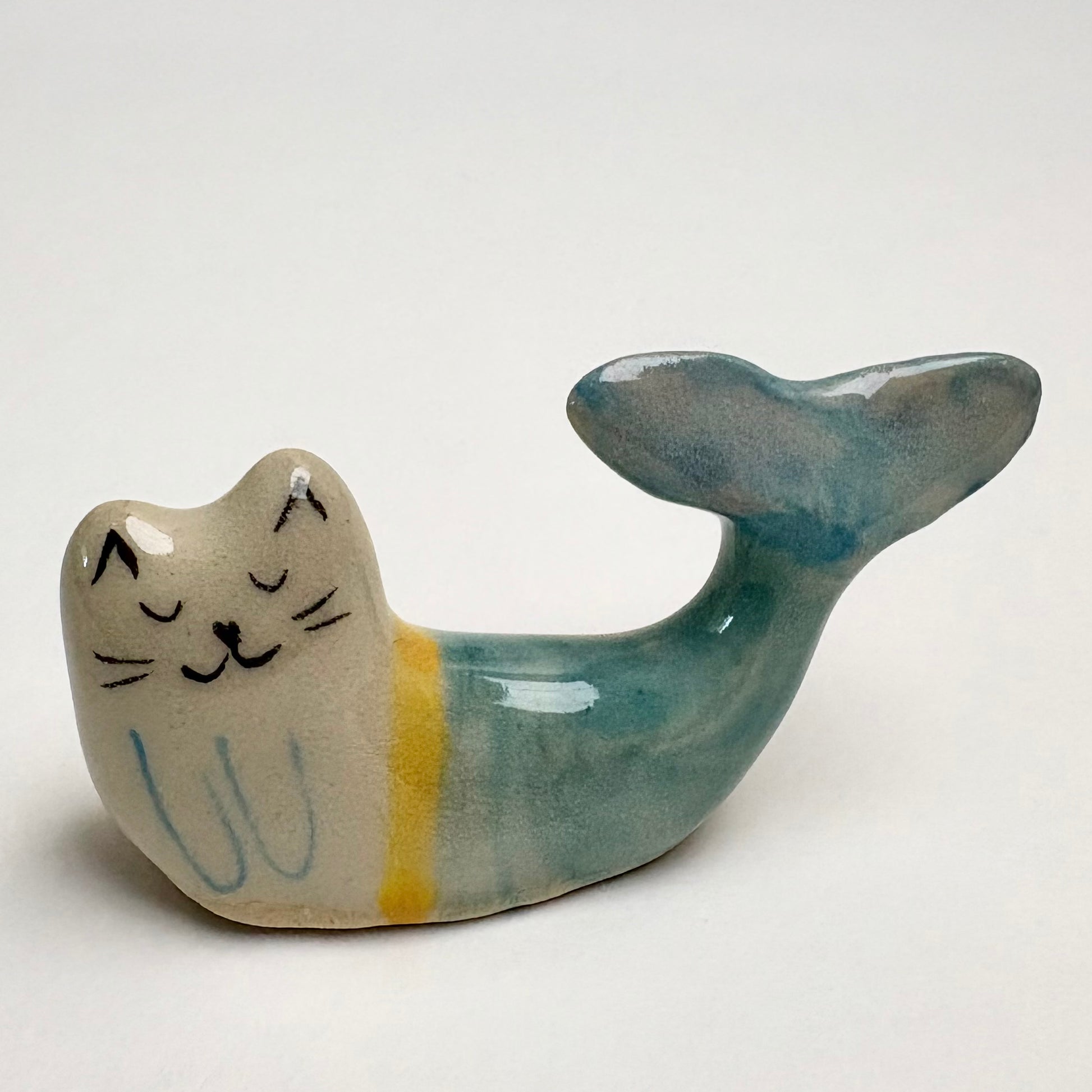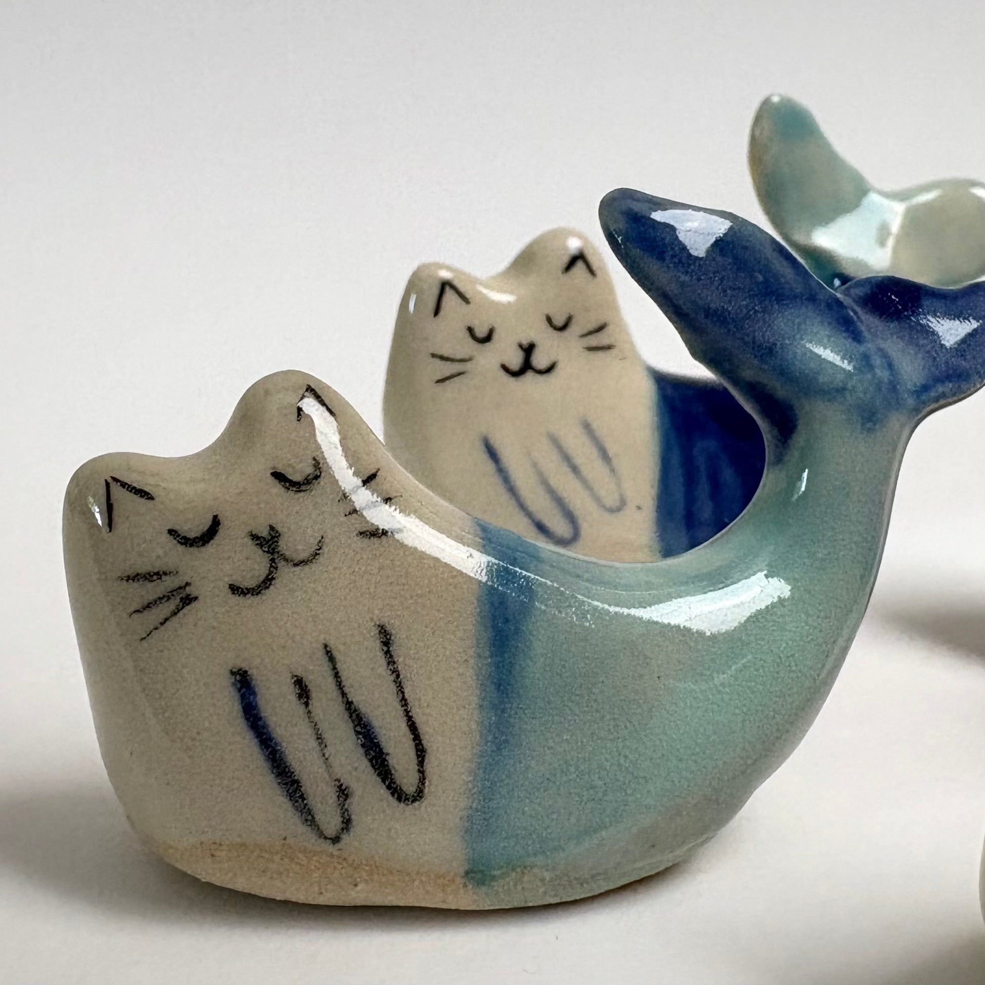Handmade ceramic cat mermaid/ Ceramic purrmaid / Cat figurine/ Fun trinket/ Cute cat lover gift/ Cat mermaid collectible figurine
