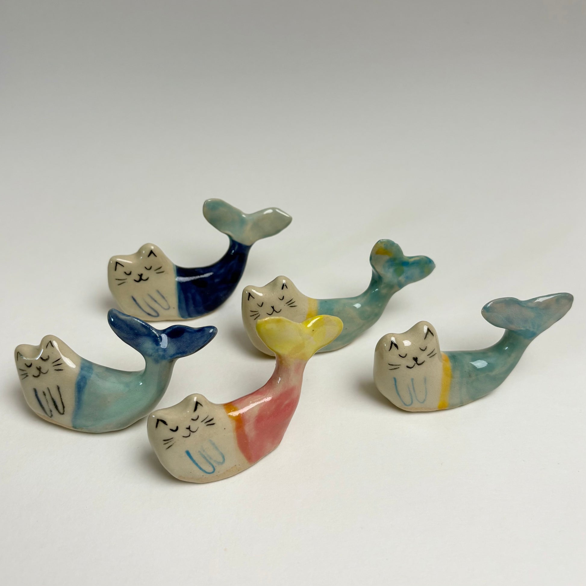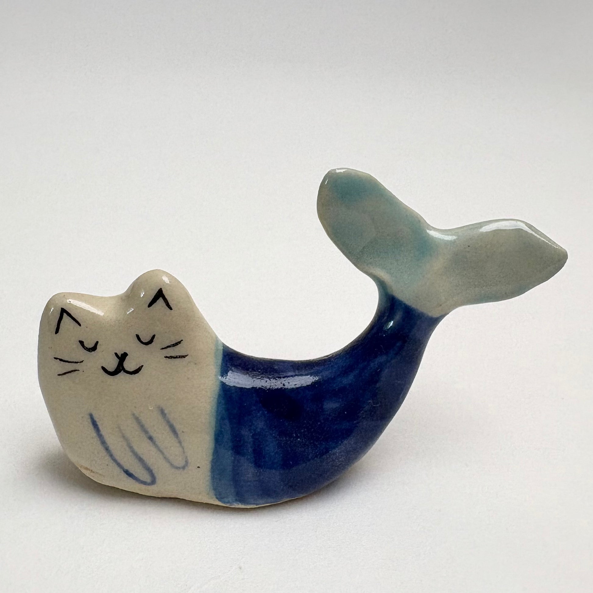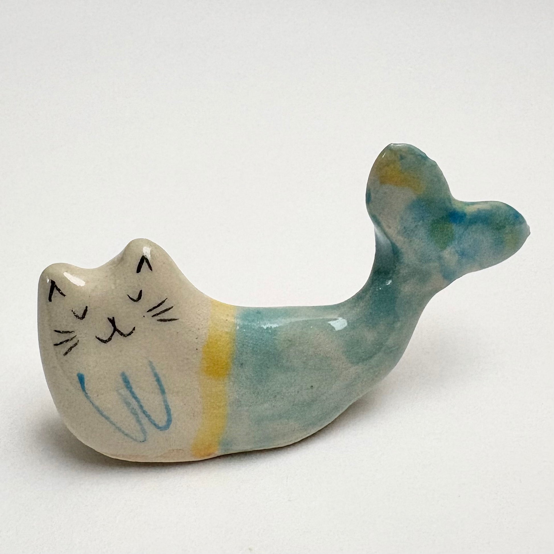- This handcrafted little cat mermaid was made from white clay and then carefully glazed to give it a whimsical look. It went through 2 firings in a kiln