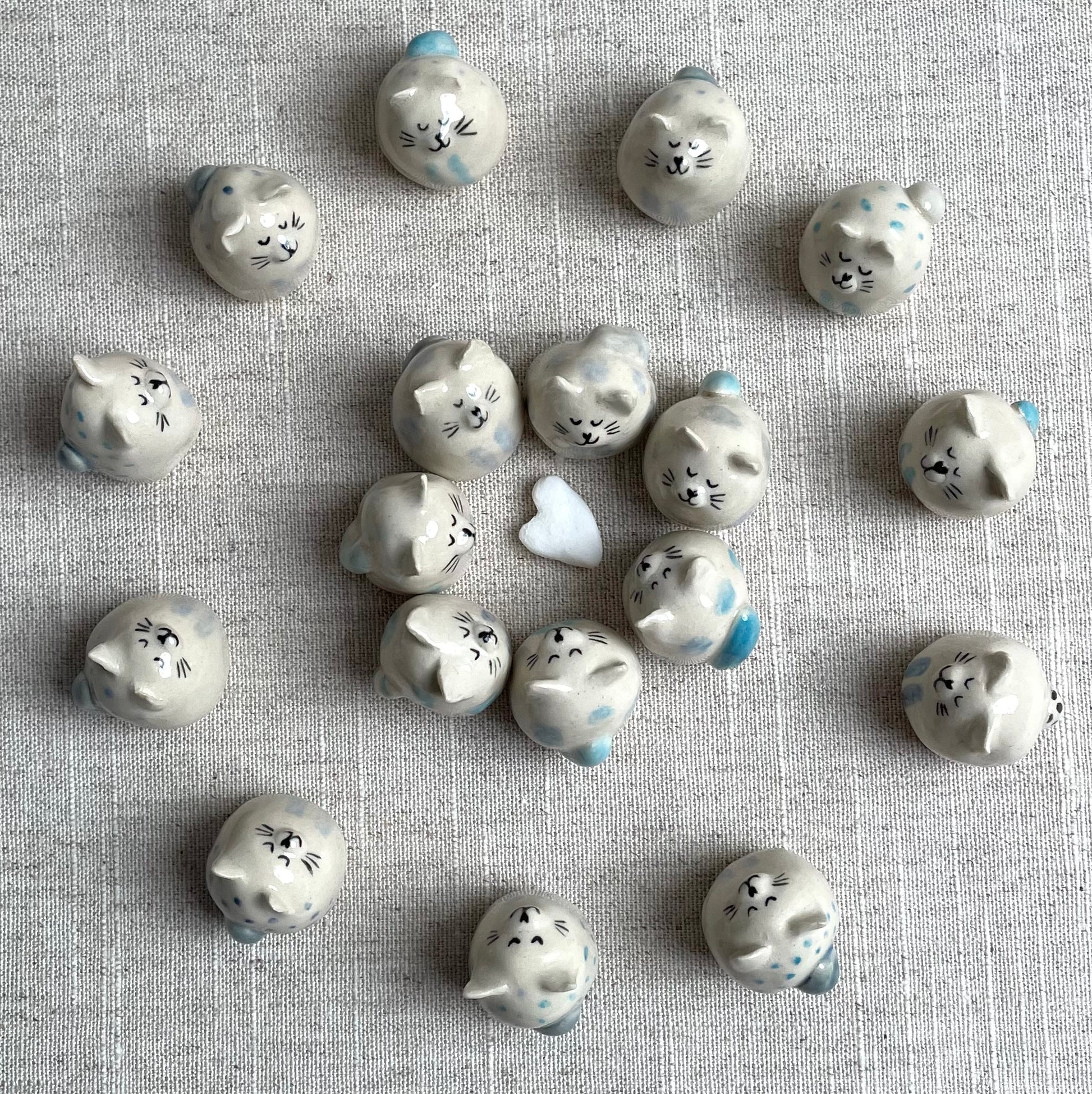 Meet your new tiny feline friend! This handmade ceramic cat figurine is small enough to fit in your pocket but full of personality. Each one is lovingly crafted by hand, making every kitty unique.