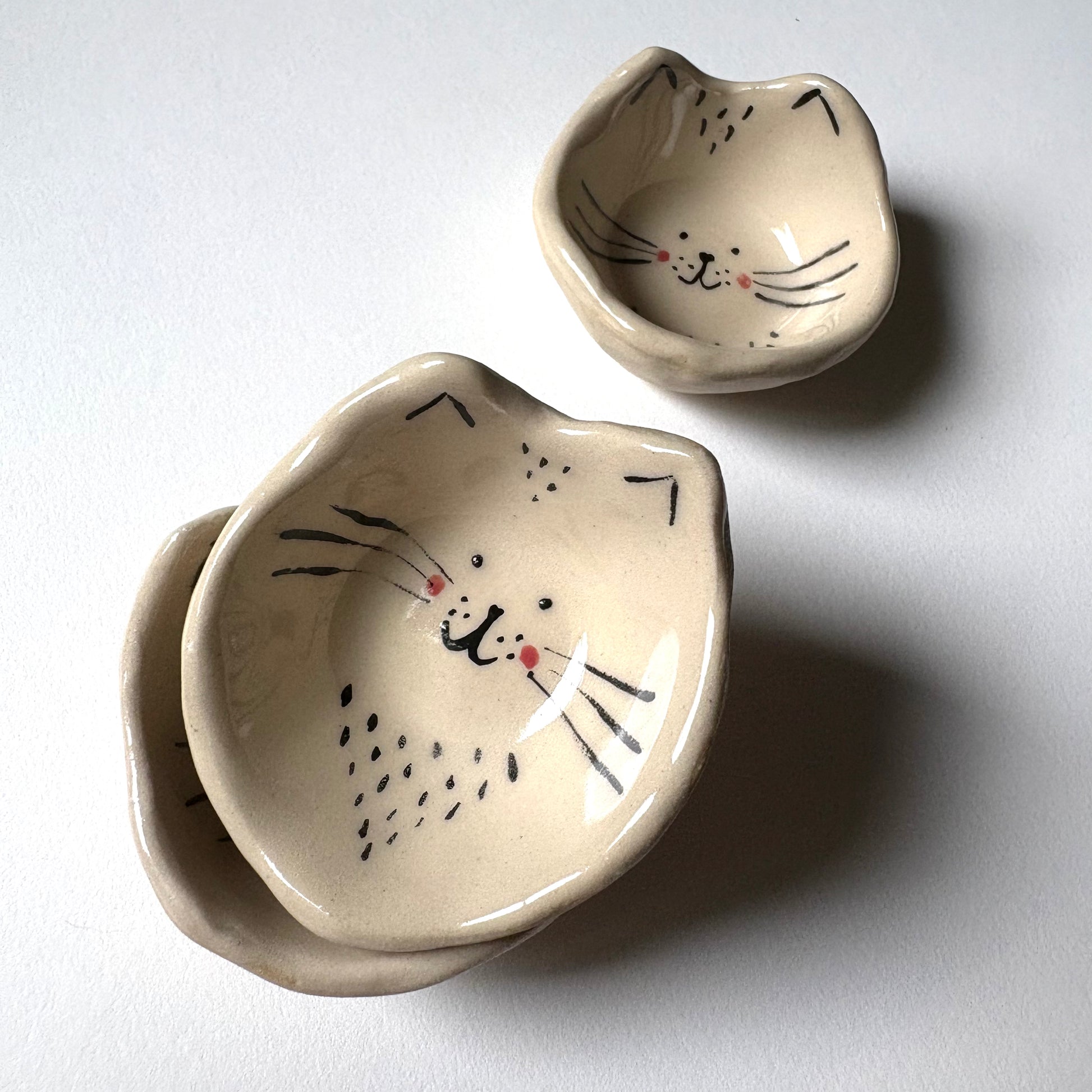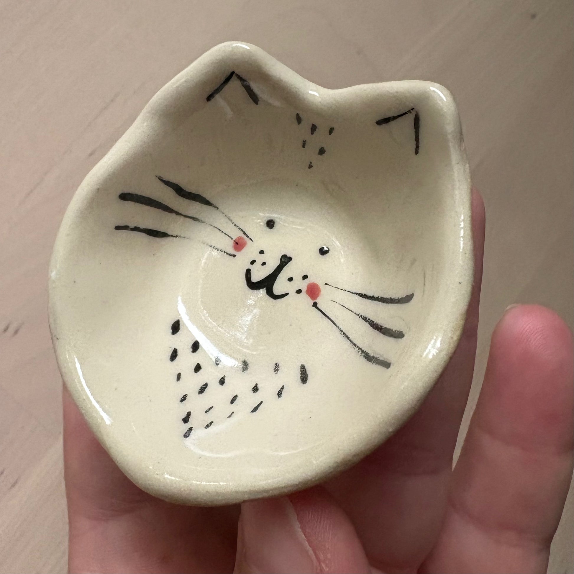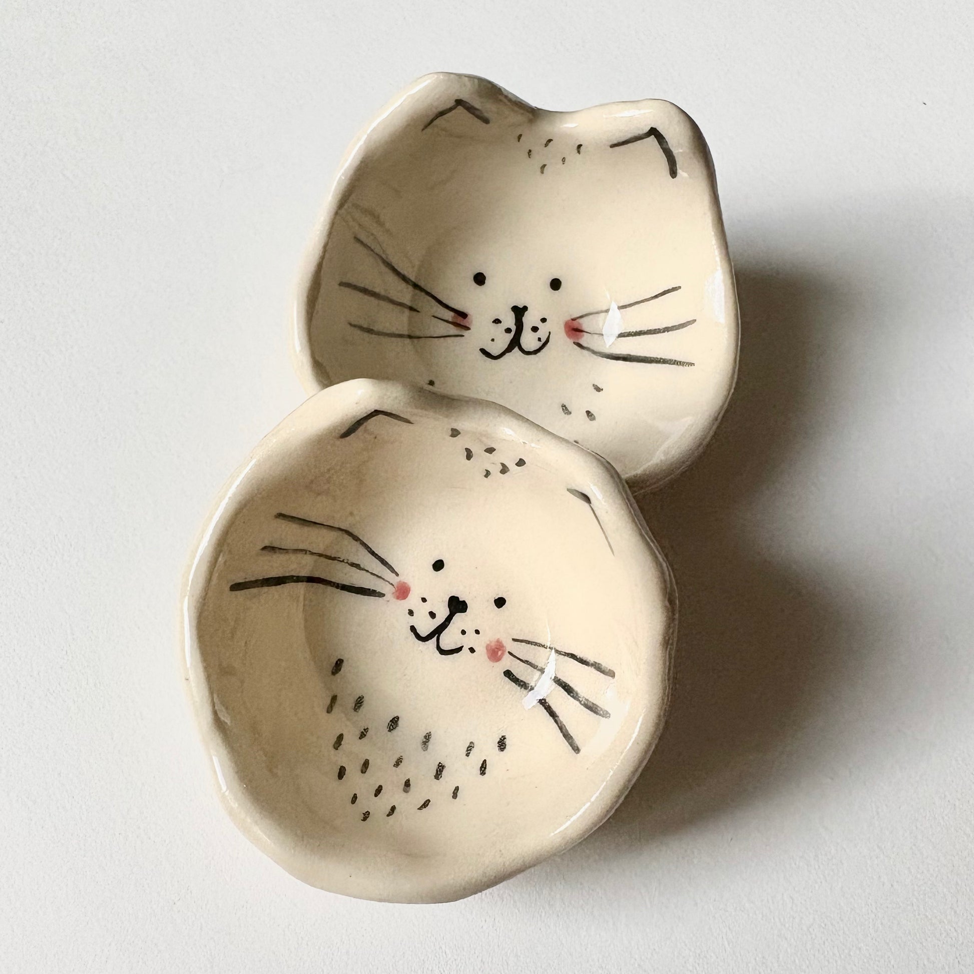 Tiny Cat Face Mini Dish – Handmade Ceramic