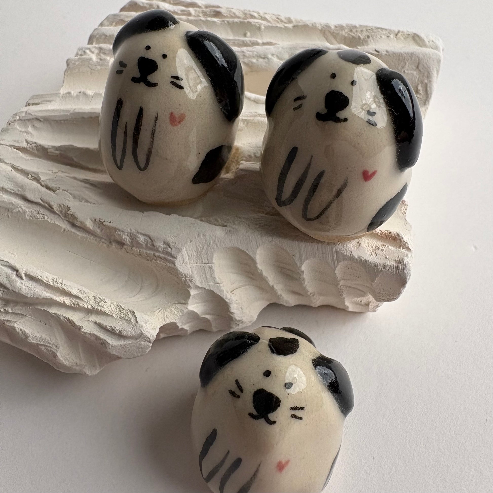 This handmade ceramic dog figurine is small enough to fit in your pocket but full of personality. Each one is lovingly crafted by hand, making every dof unique.