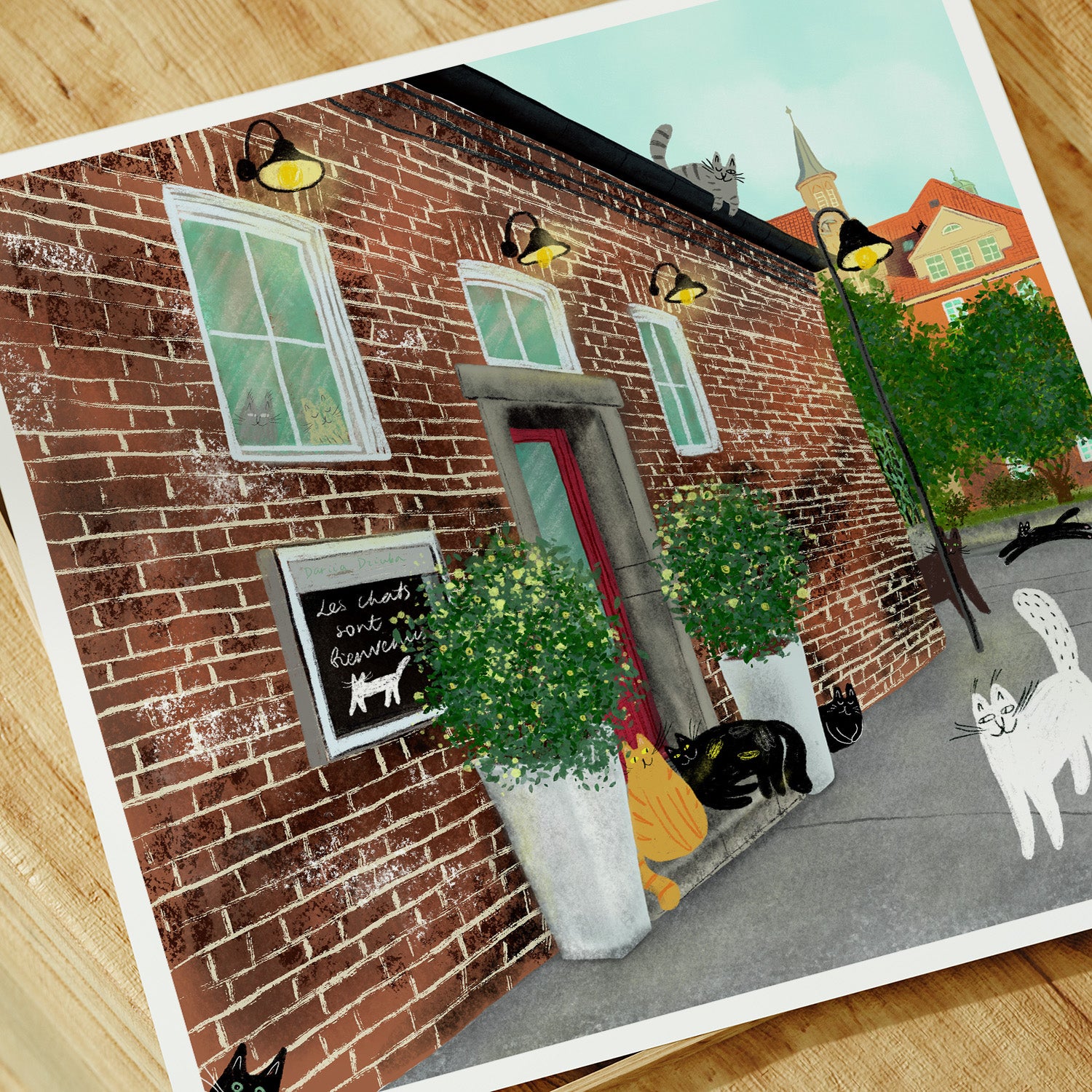 The art print of cats in restaurant in Germany is printed on high quality fine art paper.
